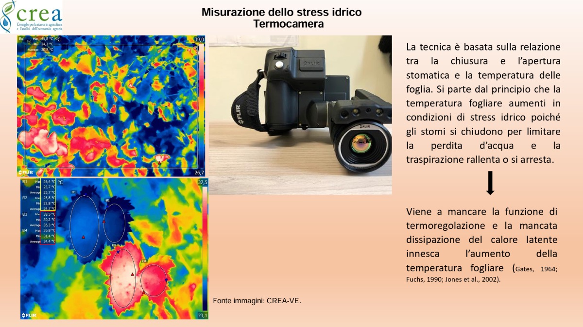 Inoltre, l'impiego di termocamere richiede una certa dotazione tecnologica, che fino a pochi anni fa era appannaggio esclusivo dei centri di ricerca e università, ma che oggi è sempre più accessibile anche per le aziende agricole, grazie a dispositivi portatili o montati su droni e trattori (le immagini satellitari sono gratuite). È importante anche ricordare che il CWSI restituisce una fotografia puntuale dello stato idrico della pianta, che per essere interpretata correttamente deve essere integrata con altri dati, come le condizioni climatiche e lo stato fenologico della vite.